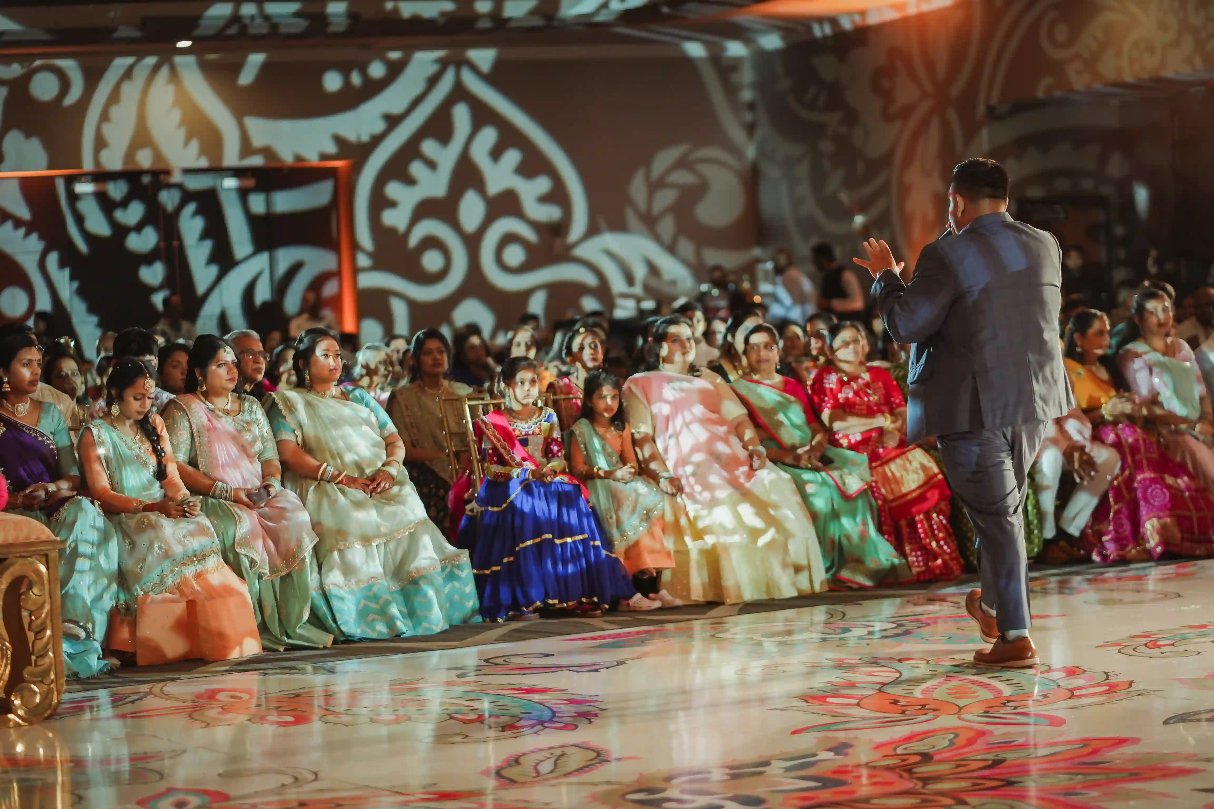 The wedding festivities began with an incredible Sangeet evening filled with music, dance, and joyful performances. Guests gathered to celebrate the couple with vibrant Garba dancing, laughter, and heartfelt moments that set the tone for the entire weekend.